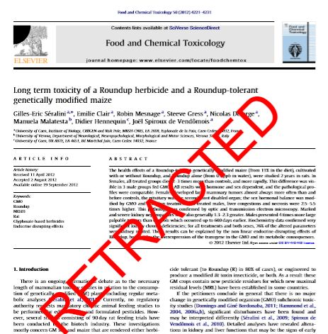 最后,《食品与化学毒理学》不得不单方面宣布将这篇论文撤稿,并将这个撤稿声明刊登在2014年的一期杂志上。在这个声明里,主编代表杂志社向读者传递了下面几点信息: