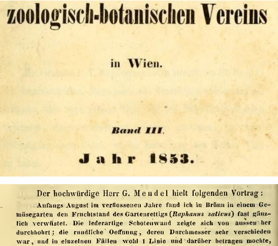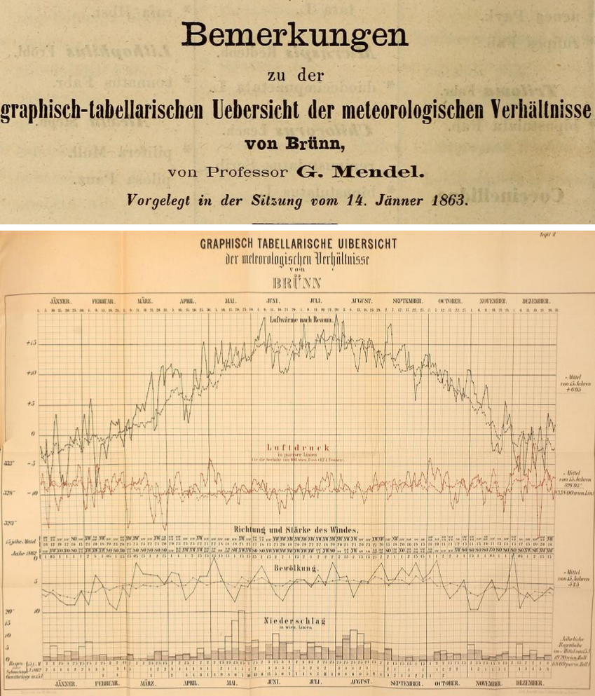 1. 孟德尔:关于布尔诺气象条件的图表概述。布尔诺自然研究学会会刊, 1863; 1:246–248.