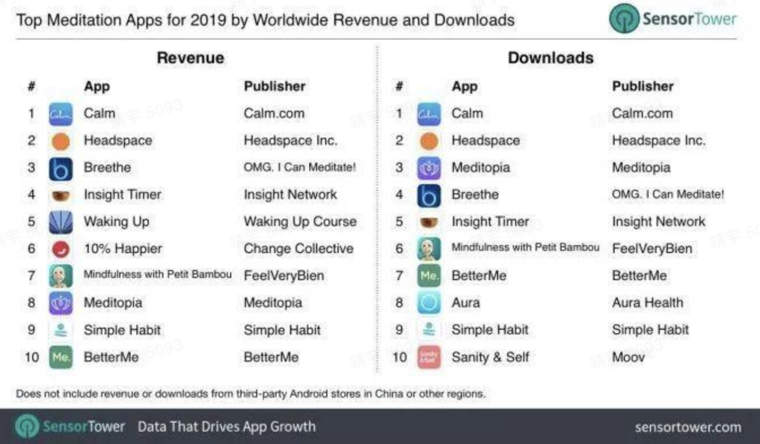 2021 年 4 月,主打声音助眠的 App Ease 开始在国内各大应用商店上架。Ease 的投资者,就是身心健康领域的独角兽公司 Calm。Calm 是最早关注用户睡眠问题的 App,也是这一领域全球最大的公司。截至 2020 年 12 月 8 日,Calm 累计融资 2.17 美元(约合 13.89 亿元人民币),估值已经达到 20 亿美元(约合 127.97 亿元人民币),累计下载量超过 1 亿次。