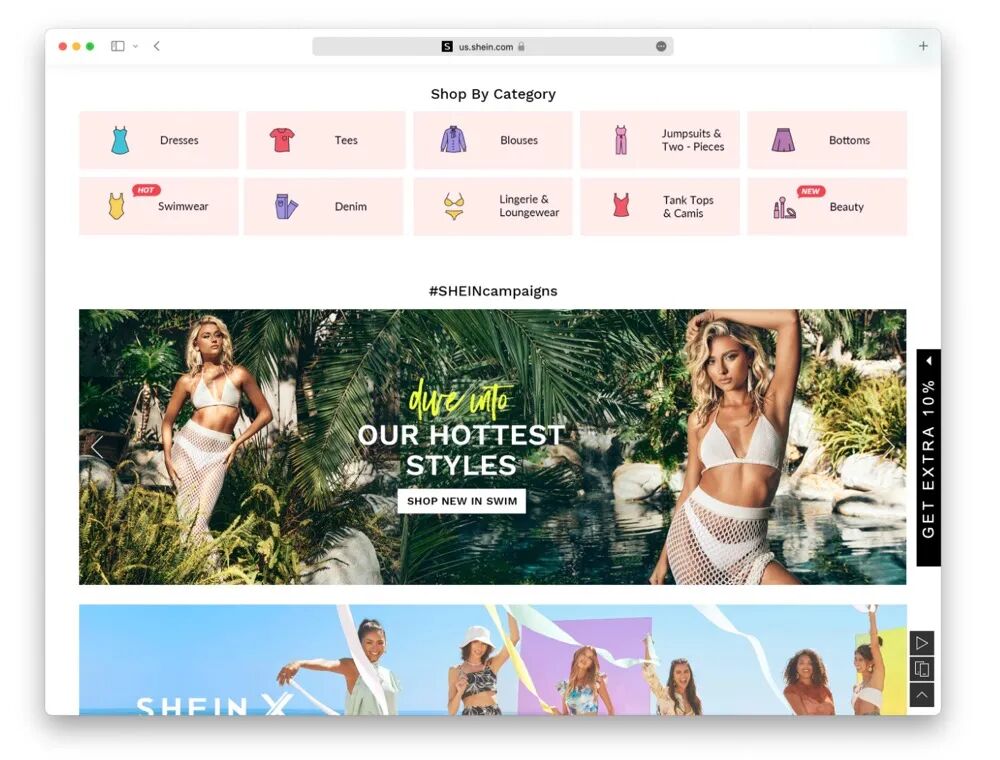 SHEIN 用好了这部分站内流量,并且把自己变成了「抖音式电商」。亚马逊采用的是搜索逻辑,平台卖家靠的是通过优化关键词等手段来提升搜索排名,消费者不一定能第一眼就找到自己想买的产品;而 SHEIN 用的是类似抖音的推荐逻辑,app 时时刻刻都在捕捉用户的动态信息,并进行个性化推荐,大量的上新让人应接不暇。据 Similar Web,用户访问 SHEIN 网站的平均停留时长在 8 分 36 秒,高于任何主要美国时尚品牌,跳出率不到 40%,SHEIN 已经让用户上瘾了。