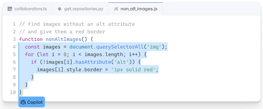 Copilot 可以提供多个备选方案的代码供程序员选择。