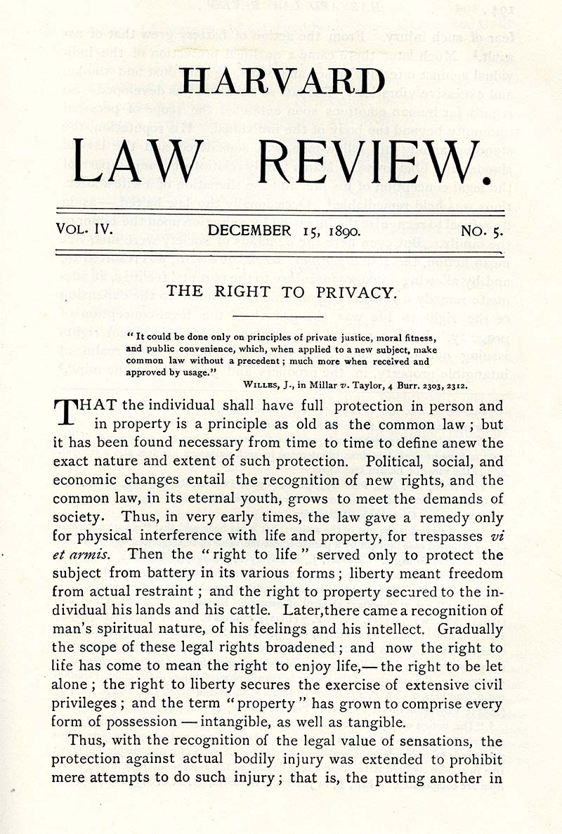 1980 年,律师萨缪尔·沃伦(Samuel D. Warren)和路易斯·布兰戴斯(Louis Brandeis)就这个问题在《哈佛法学评论》发表文章《隐私权》,这是法学界首次提出了隐私权的概念。