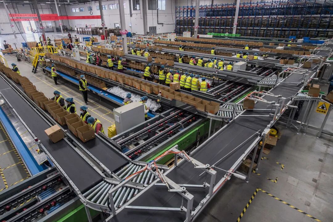 阿里巴巴投资建设的数字农业西安集运加工中心智能分选打包线