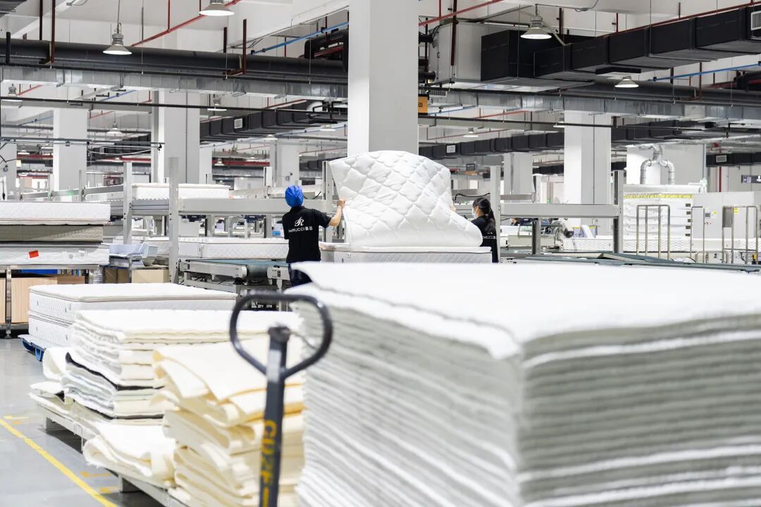 床垫生产工厂|视觉中国