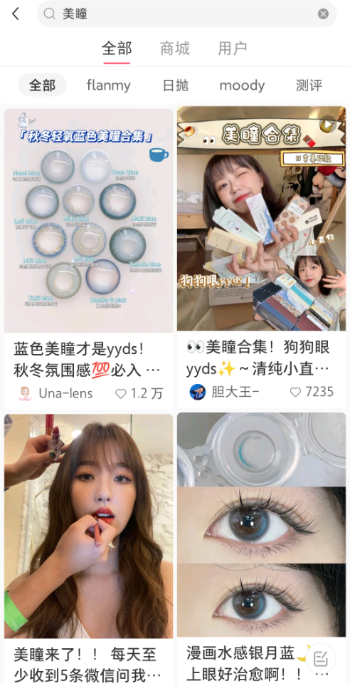 小红书自 2020 年开放美瞳品牌的投放,是国内新锐美瞳品牌的营销主阵地之一。而在此之前,小红书上铺天盖地的美妆教学和种草视频,早已培养起了新一代消费者的美学意识——早在真正购买自己的第一款美瞳之前,他们就已经知道什么样的美瞳可以搭配自己的妆容。