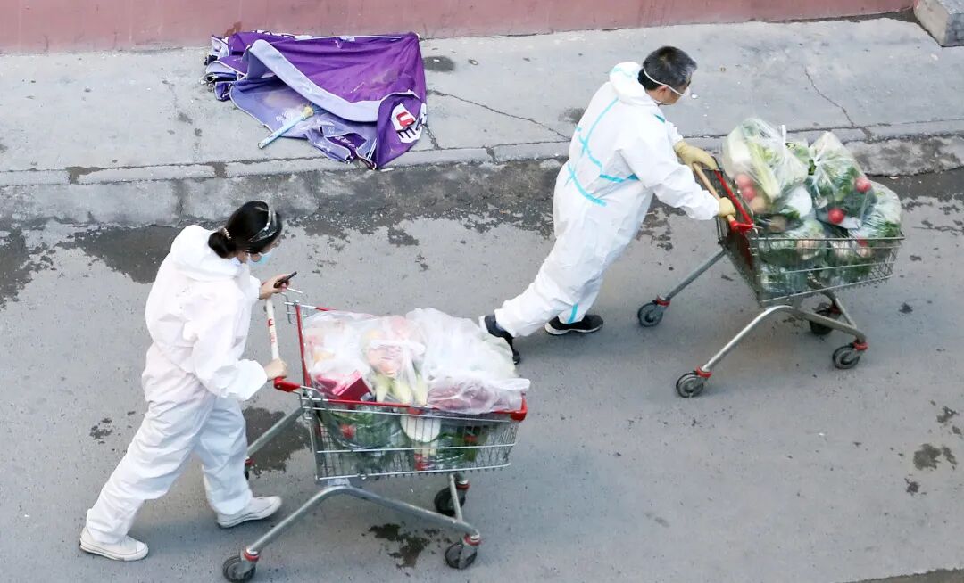 有一天,在一个蔬菜供应架旁边,超市的店员正在上货,这个人已经连轴工作 72 小时没有离开过超市了,因为他的搭档所住的小区被封锁,没法到岗,因此这片区域的上货、整理全靠他一个人。货架前,顾客在抢大白菜,几次劝告无果,他和顾客争执起来。