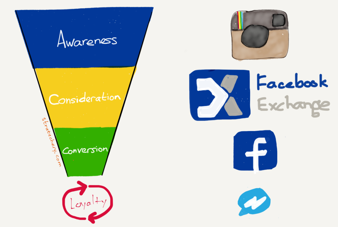 此前,本描绘了一幅传统营销漏斗的理想图景,以及谷歌和 Facebook 的广告产品体系作用图。