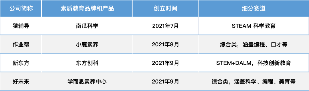 「双减」政策落地后,新东方、好未来、猿辅导、作业帮等 K12 综合性教育企业均向素质教育转型,谋求破局之道。