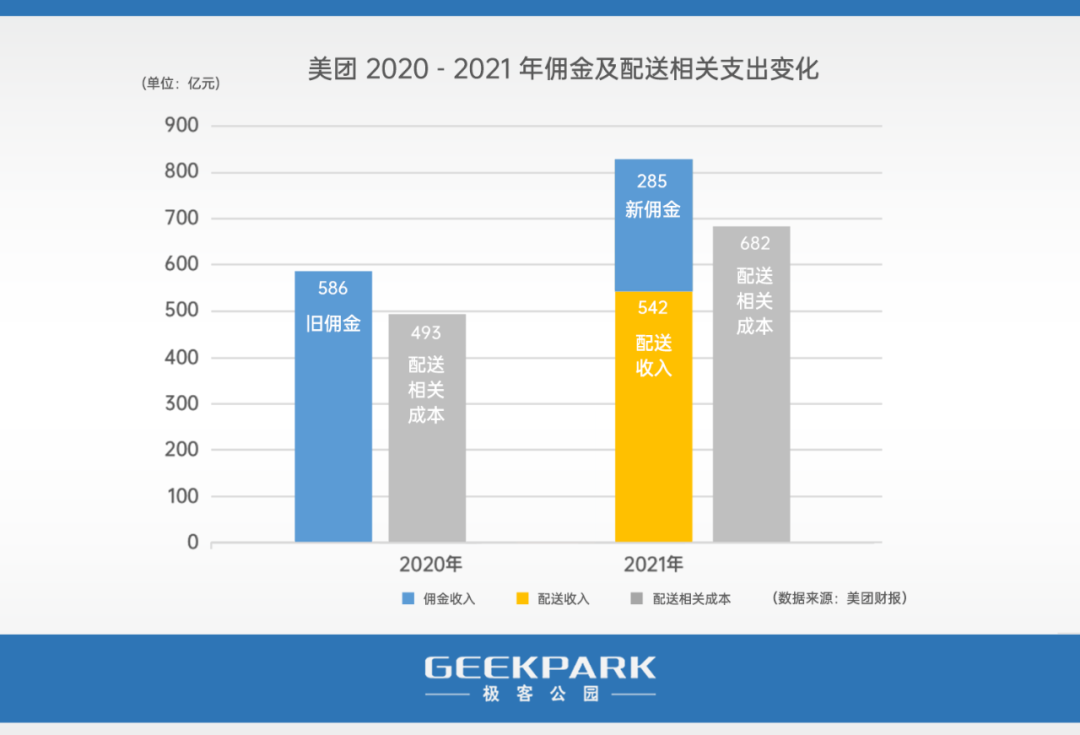 美团2020-2021年佣金配送及配送相关成本变化|数据来源:美团财报