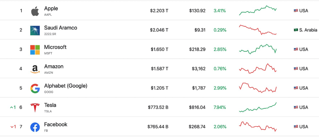 2021 年全球市值最高企业,互联网公司持续霸榜|Teslarati