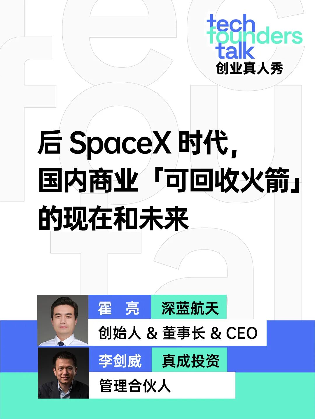 今晚 8 点( 5 月 10 日),我们将和深蓝航天创始人 & 董事长 & CEO 霍亮一起聊聊火箭背后的产业思考。此外我们还特邀深蓝航天最大的机构投资者真成投资管理合伙人李剑威,作为连麦嘉宾。