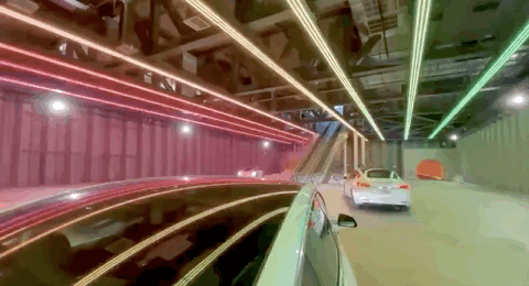 在 2019 年,TBC 再次改进方案,取消了导向轮的设计,把宝押注在了自动驾驶上面。如今,隧道里的车辆就是采取单行道+自动驾驶的方案来前进。但是不得不提,这种方案似乎没有最开始想的那么完美。在 TBC 官网上提供了一段实际测试视频,其中显示车辆在直线可以跑到 200km/h,但过弯道时速度会降到 60km/h 左右,并且司机一直手扶方向盘,不清楚到底是自动驾驶还是司机人工驾驶。