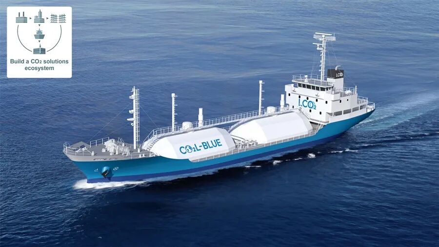 日本三菱造船公司的液化二氧化碳运输示范试验船概念图。|来源:三菱重工