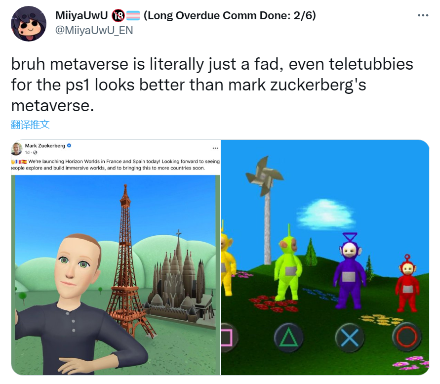 但也有人认为拿 90 年代的 PC 游戏显然是高估了,他认为 94 年 PS1 的画面看起来都比这个扎克伯格的元宇宙好上不少。