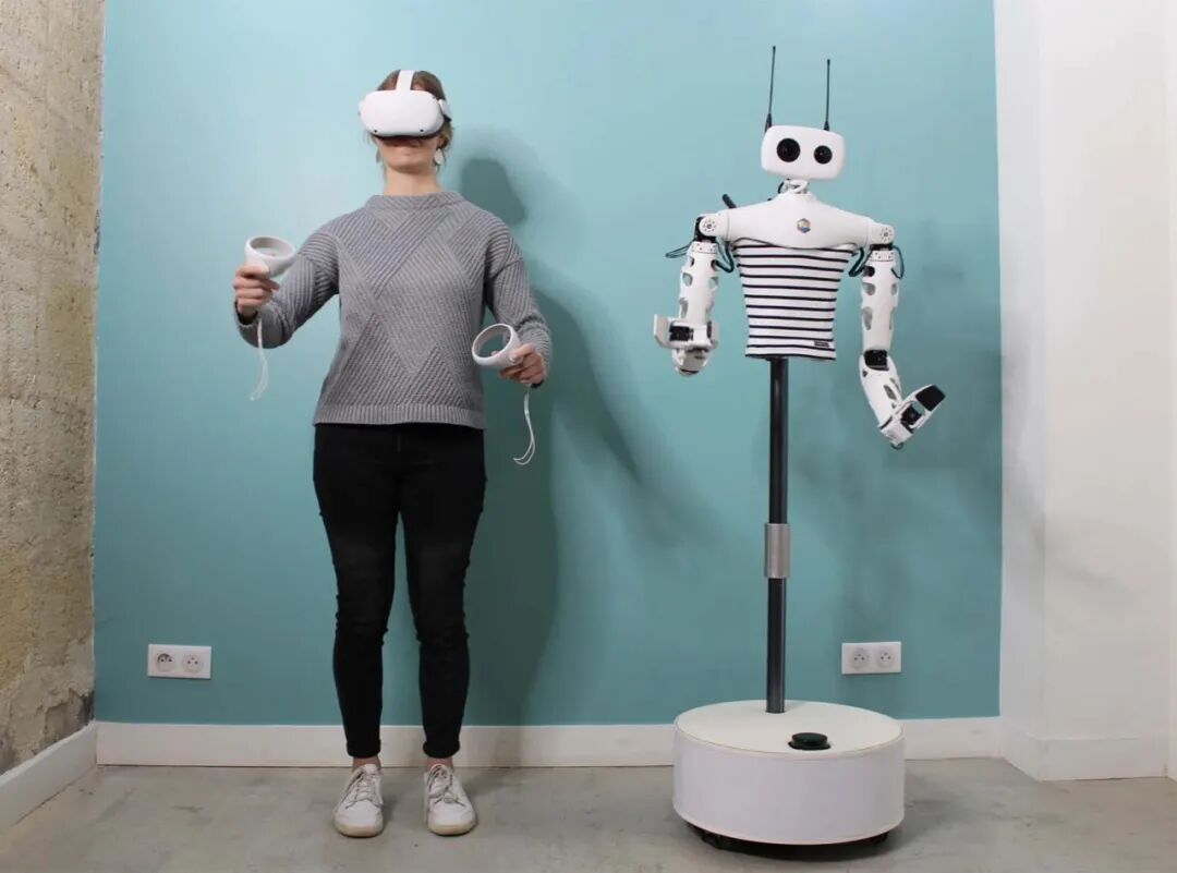 而当它需要完成那些超出预编程范围内的服务,例如为人开门、捡拾物品等内容时,位于后端的操作员便可以通过接入 VR 设备接管机器人,通过获得机器人的视线内容、听到机器人听到的声音,为机器人面前的人提供对应的服务和操作。