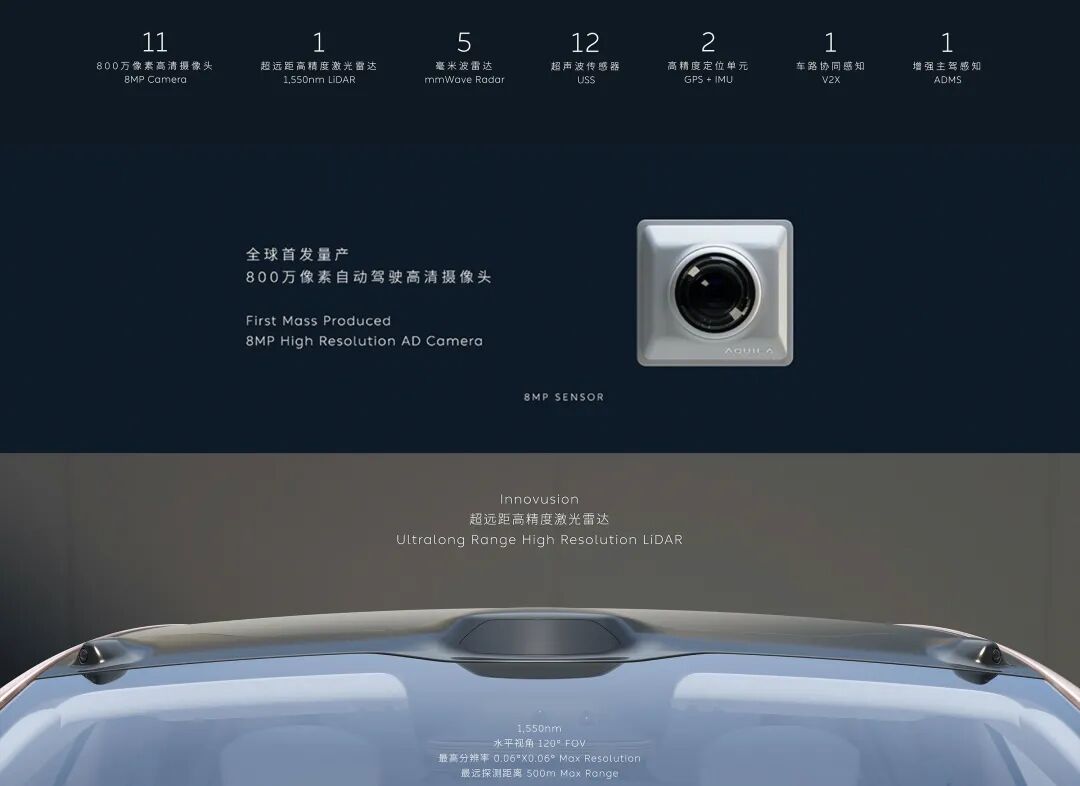 更重要的是这个 Innovution 的 1550nm 波长固态激光雷达实现了等效 300 线的激光雷达,这个「超远距高精度激光雷达」的上车是国内新造车势力在「自动驾驶」技术上与特斯拉「永远不用激光雷达」分歧的开始。