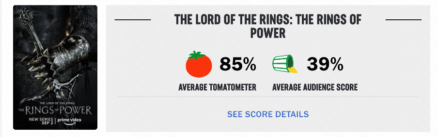《好莱坞报道》对此评价:《力量之戒》遭遇了一次「恶评运动」——大量用户由于对创作者、题材或者其他非作品本身的因素而给出低分。