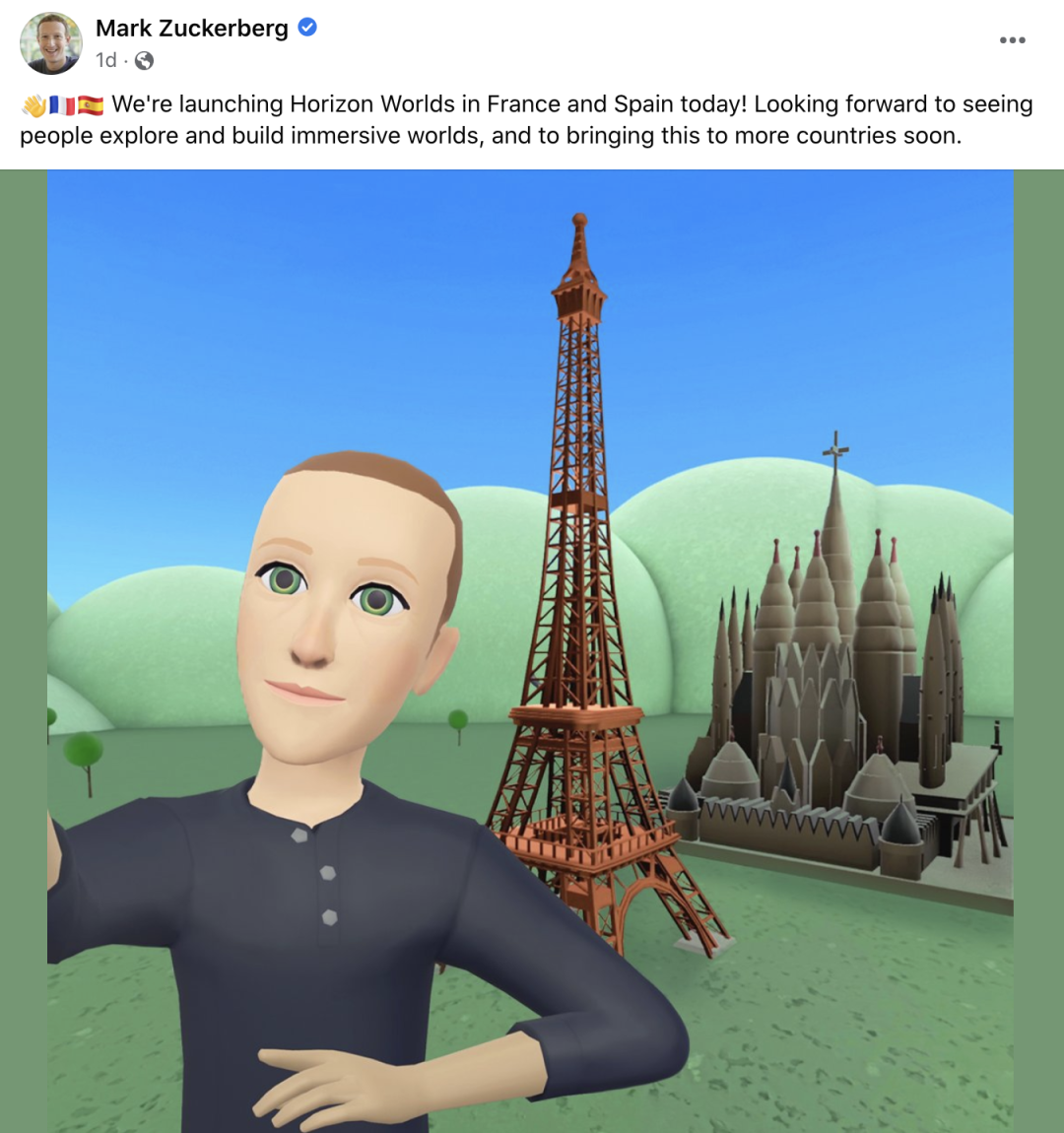 应用在欧洲推出时,Meta 团队在社交媒体上分享了一张扎克伯格与埃菲尔铁塔在元宇宙里合影的图片。图片中无论是扎克伯格的虚拟形象,还是背景里物体的建模,都显得粗糙且诡异。很快这张图遭到了整个科技界的「群嘲」,有游戏媒体评价,Meta 相当于用 VR 复刻了一个 2003 年代的老游戏《第二人生》。