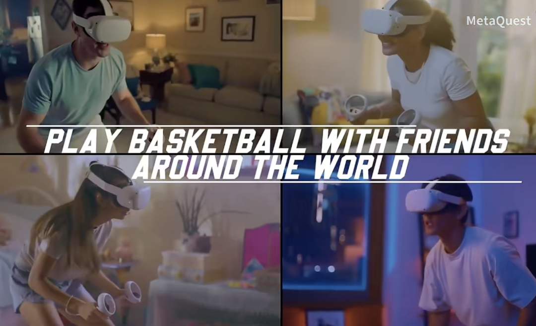 另外 Meta 还推出了一些 VR 健身课程和游戏,其中 Basketball VR 可以最多可以在线与六个人一起玩。