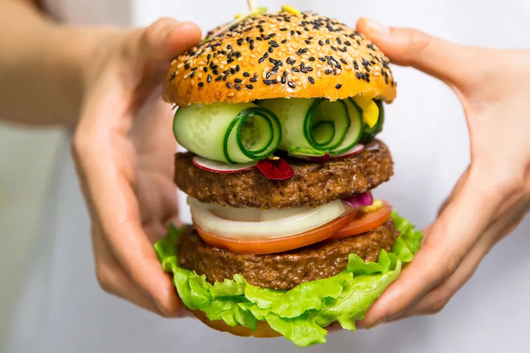 采用植物肉肉饼的汉堡|图片来源:Hey Maet