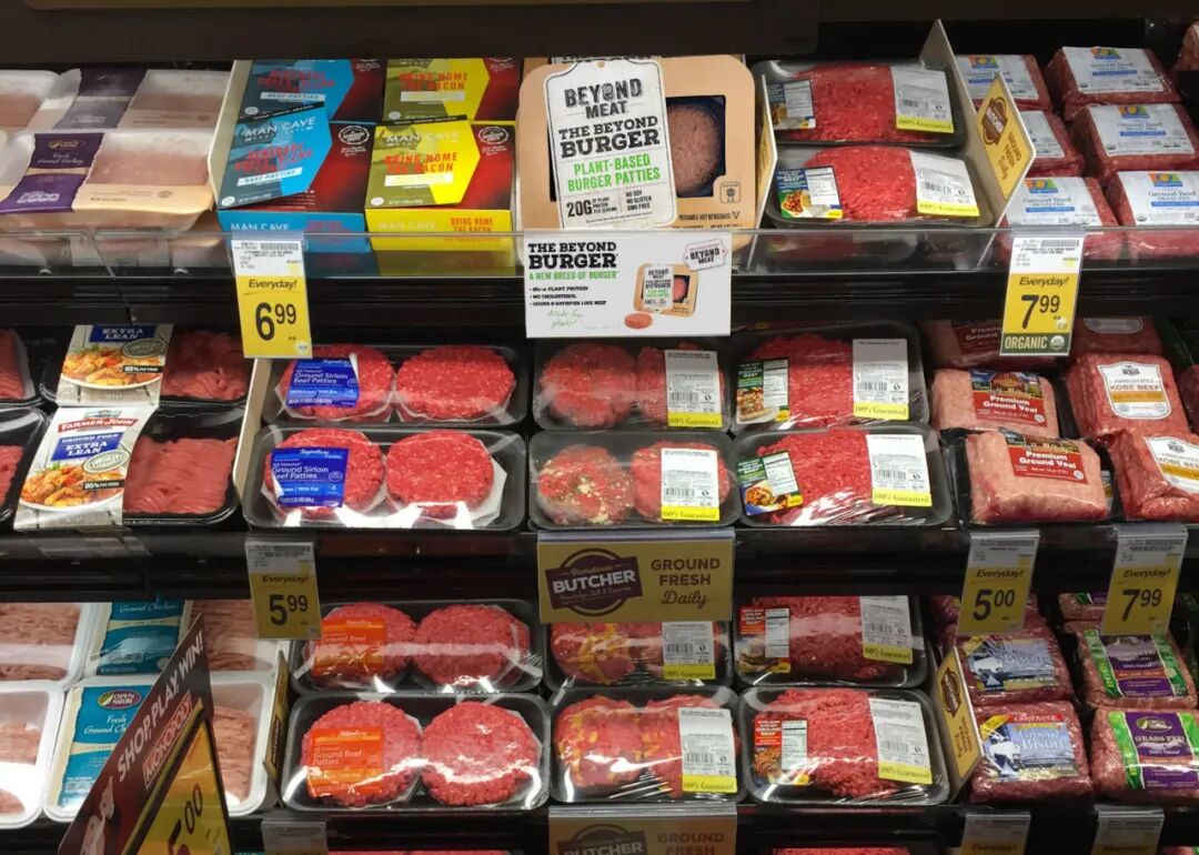 在美国的一个超市里,植物肉和真肉已经摆在了一起|视觉中国