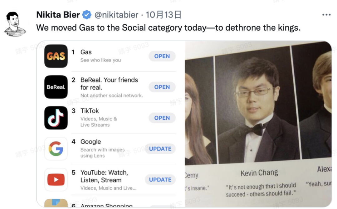 目前看到的情况是,Gas 似乎确实像 Nikita Bier 所说,在广告营销上投入不多,而是通过用户间的自发分享轻松完成裂变。