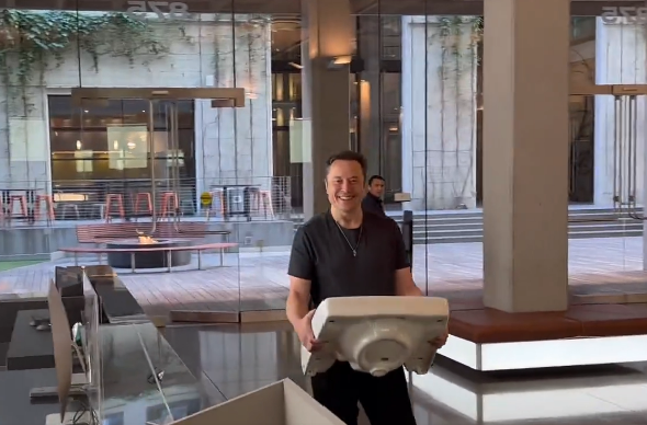 马斯克搬着一个洗手盆走进了 Twitter 公司总部大楼