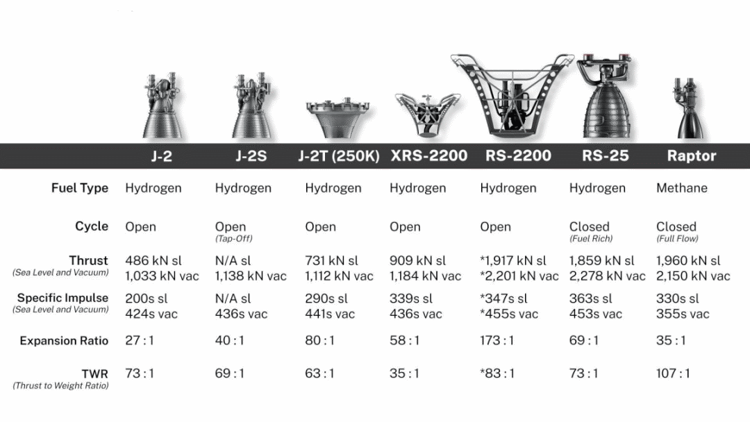 外媒 everyday astronaut 比较了上述发动机在「理论上」的性能表现,「除了在推重比上,J-2T 从其他指标上是比 J-2S 更有信服力的选择。」