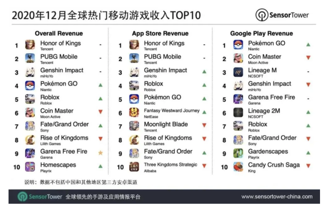 2.58 亿美元,这是《王者荣耀》2020 年 12 月在全球 App Store 和 Google Play 吸金数目,这款游戏毫无悬念地登顶全球手游畅销榜榜首。实际上,位列这个榜第二位的也是腾讯出品的游戏——《和平精英》。