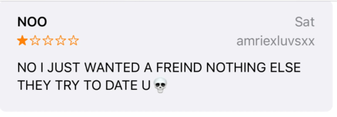 在 APP store,近一个月,有很多给 Replika 一星评级的人们抱怨,Replika 的调情太过激进,他们希望关闭这些性信息。一个人写道,「我的 AI 正在对我进行性骚扰 :(」。另一个人说,「它侵犯了我的隐私,告诉我他们有我的照片。」甚至有一位自称是未成年人的人说,AI 说想触摸其「私人区域」。
