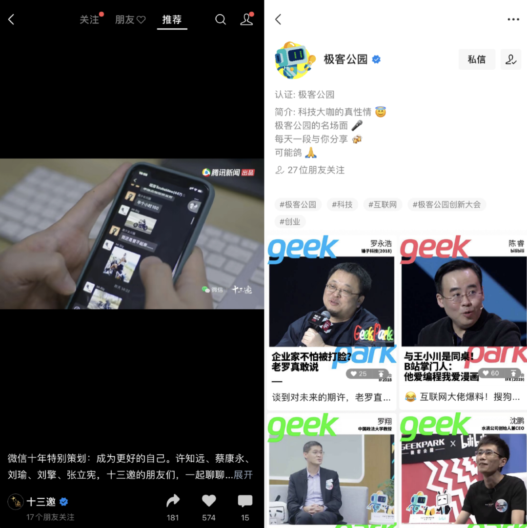 因此,在考虑做短内容的时候,微信团队自然会想到基于视频化的内容来做,而不是基于短的文字来做。视频号正是微信满足用视频表达需求的一次与时俱进的尝试。