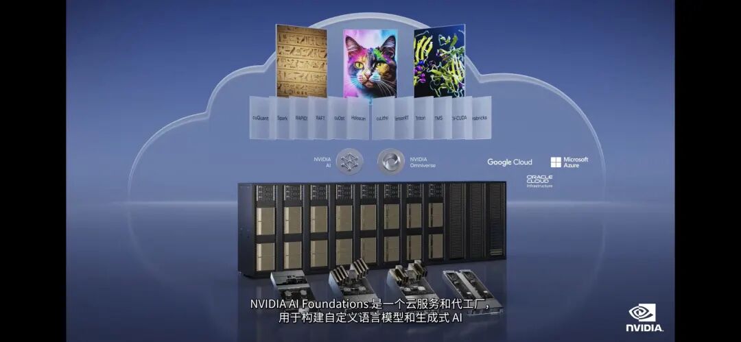 AI Foundations 的服务包括 NVIDIA NeMo,用于构建文本-文本的生成模型;毕加索,一种视觉语言模型制作服务,面向希望构建基于经授权内容训练模型的用户;以及 BioNeMo,帮助生物医药研究人员。