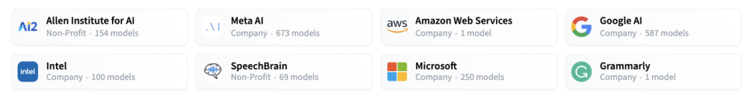 目前,这些模型已经服务了数万家企业进行资源开发,帮助科研人员和相关从业人员更好地构建模型、更好地参与到产品和工作流程中,其中不乏 Meta、亚马逊、微软、谷歌等知名 AI 团队。