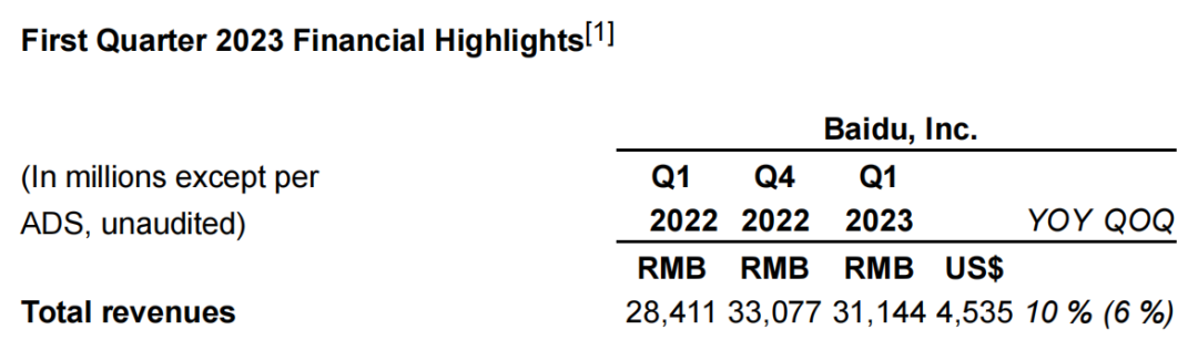 5 月 16 日晚间,百度发布未经审计的 2023 年第一季度财报。报告期内,百度营收 311 亿元,同比增长 10%;归属百度的净利润(non-GAAP)达到 57 亿元,同比大幅增长 48%,营收和利润双双超市场预期。