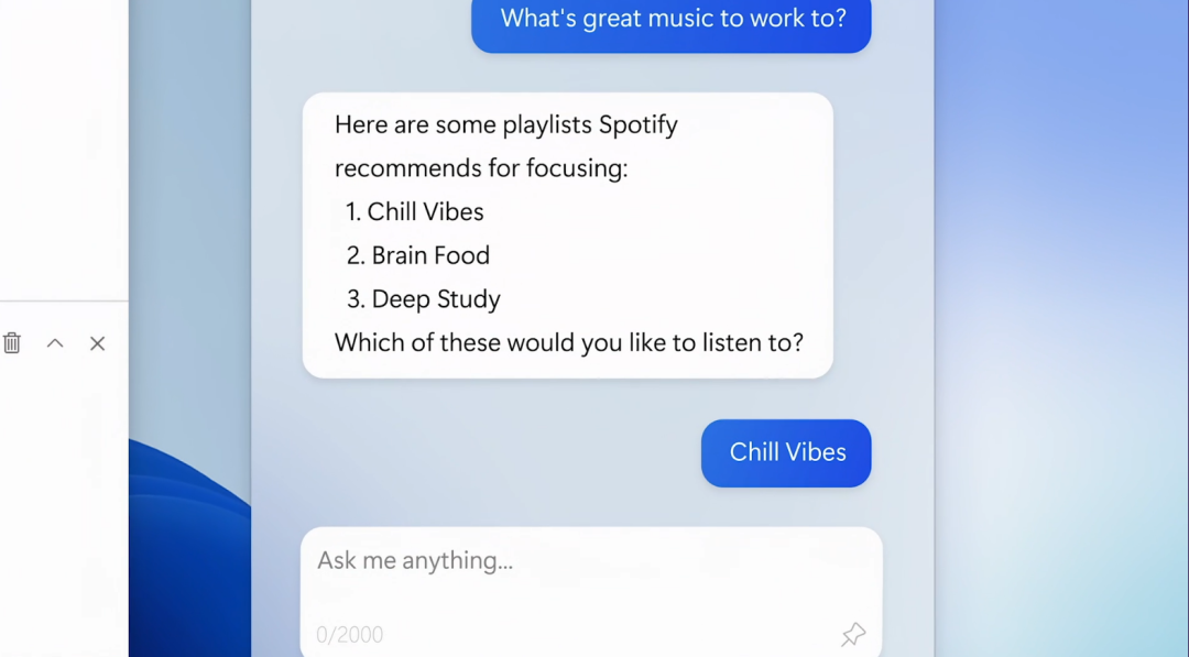 新的 Windows Copilot 工具将位于 Windows 11 的底边栏——就像新 Bing 的 AI 聊天功能一样,用户可以在 Copilot 中输入问题并将其作为一个问答式搜索引擎使用。