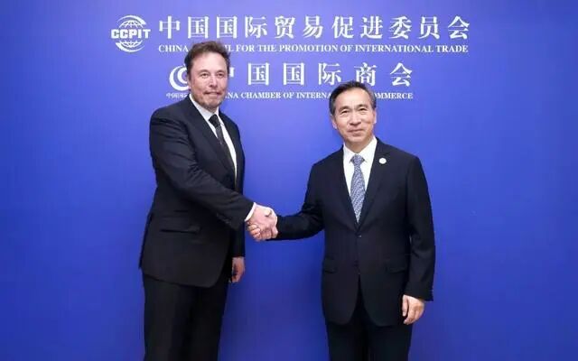 5 月 31 日,中国贸促会会长任鸿斌会见特斯拉公司首席执行官马斯克。双方就推动中美新能源产业合作、加强中美工商界交流合作、举办首届中国国际供应链促进博览会等议题深入交换意见。