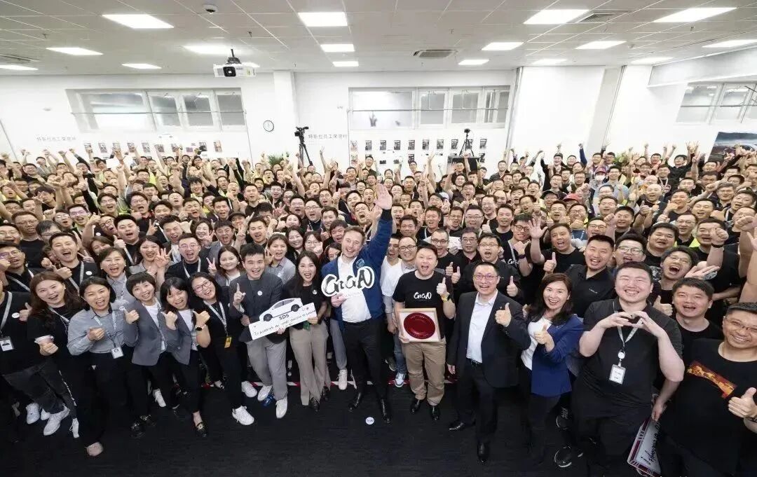 马斯克的私人飞机北京时间 5 月 31 日 21 时 26 分落地上海虹桥机场,3 小时后的 6 月 1 日凌晨 0 时 28 分,特斯拉全球副总裁陶琳微博发布两张马斯克和员工的大合影,配文「感谢所有的支持!收获满满的一天!」,地点是特斯拉上海超级工厂。