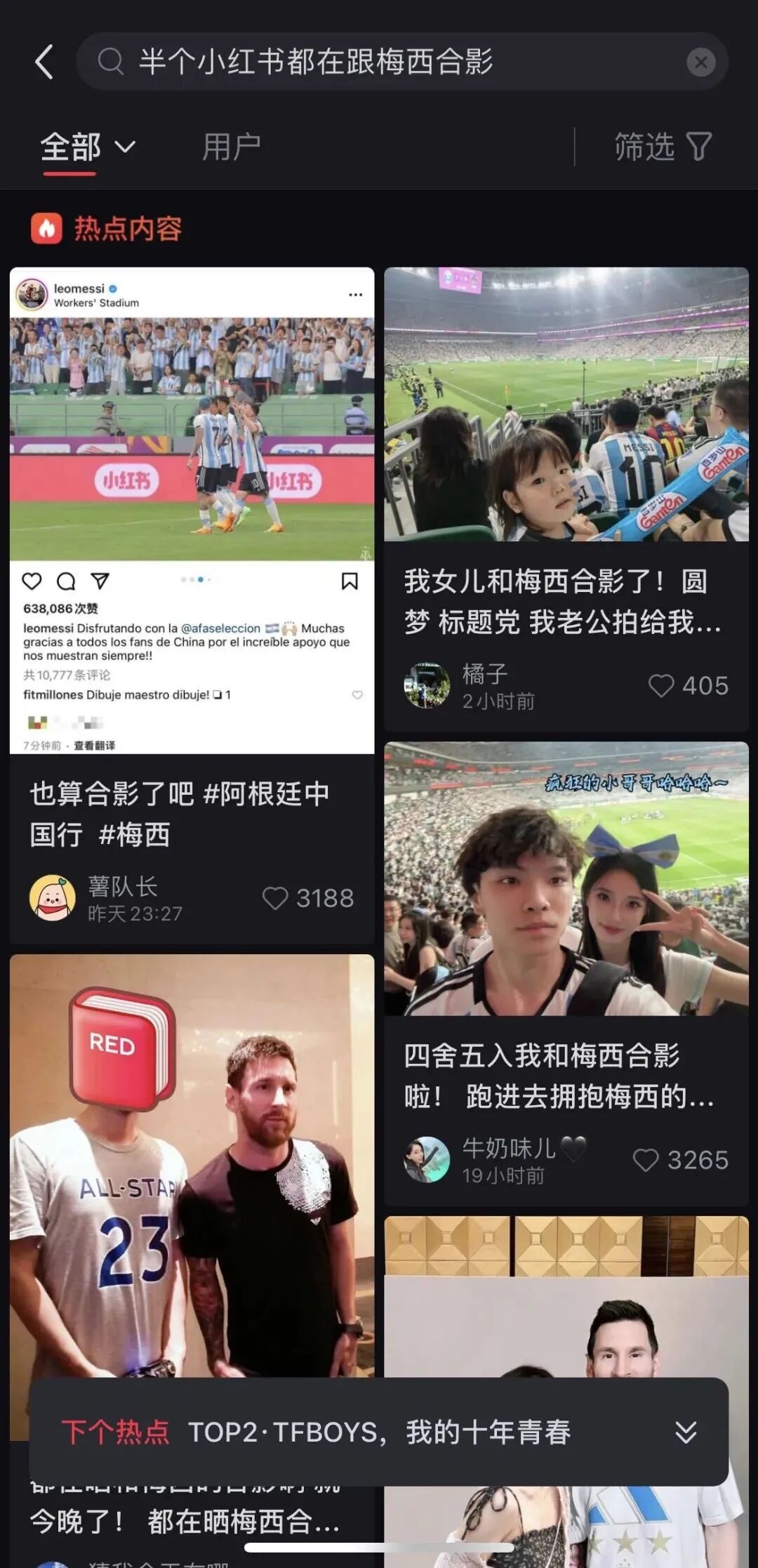 梅西来华相关笔记登上小红书站内热点内容 Top1