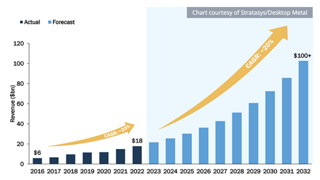 鉴于此,合并后的公司将为客户提供「端到端」的解决方案,涵盖设计、原型制作、大规模生产和售后运营,贯穿整个制造的生命周期。预计未来,该公司 50% 以上的收入将来自终端零件制造和大规模生产,这也正是增材制造(AM)增长最快的领域之一。