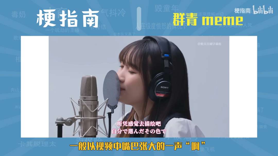 《群青》是一首好歌,但在 B 站还有另一层含义。《群青》的前奏是一个人嘴巴张大发出的一个「啊」声,在 B 站常备用于一部分 UP 主会用这个「啊」声来衔接一张图片或者一段视频,来达到鬼畜和搞笑的效果。而在开场使用《群青》,导演显然是玩上了这个「群青梗」。