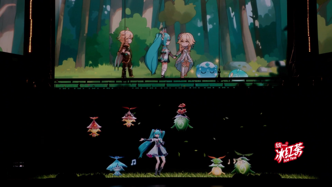 三首崩坏系列的歌曲唱罢,登场的是二次元手游《明日方舟》的 EP《Daydaydream》。之后则是这一章的重磅嘉宾——日本二次元歌姬初音未来演唱的《原神》创作歌曲——《旅行提瓦特》。