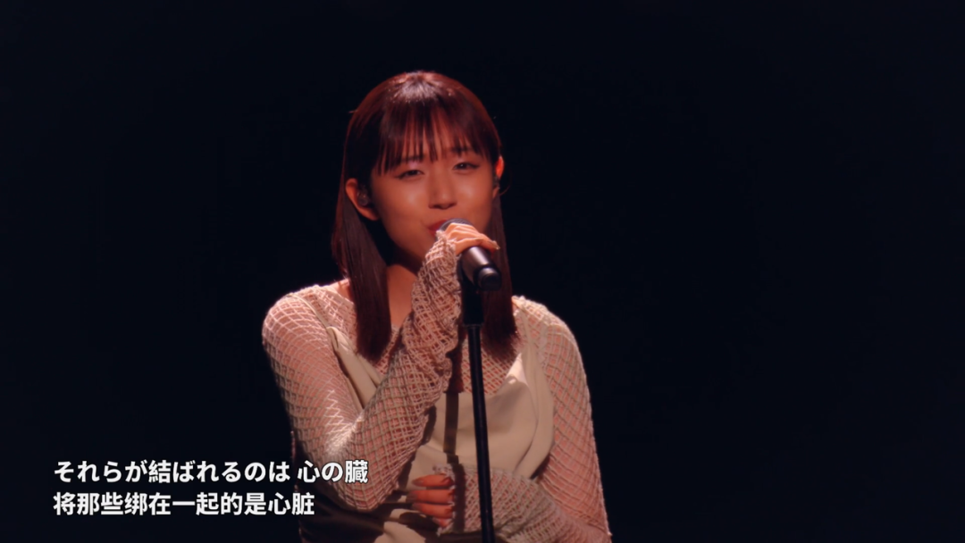 紧接着,另一位日本女歌手 milet 上台,演唱了《鬼灭之刃》最新一季动画《锻刀篇》的片尾曲《羁绊的奇迹》。