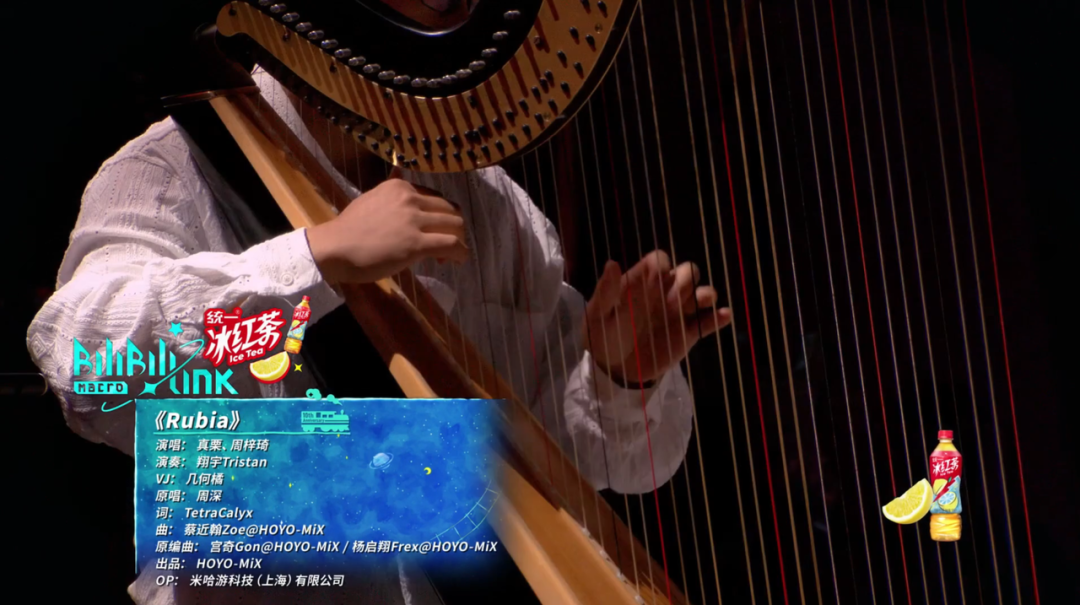 这一章的开场就是米哈游的经典三连。第一首是《崩坏三》的主题曲《Rubia》,可惜演唱者不是 B 站的老朋友、原唱周深,后者因为档期原因没有参加今年的 BML;第二首和第三首都是米哈游今年四月刚上线的二次元新游《崩坏:星穹铁道》。