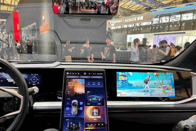 但不得不说,虽然高通的 8155 芯片没问题,但是 15 英寸高清副驾屏上玩游戏,画面还是偏小,给人的视觉震撼,远不如后面的两扇「鸥翼门」。
