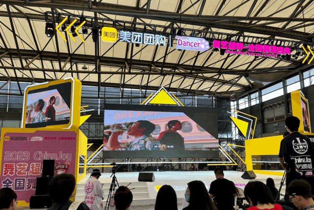 当穿着亮黄色 Cos 服装的「美团姬」在展台附近游走时,都让人不禁怀疑,美团什么时候这么会「玩」了?当你看到小姐姐们在美团的舞台上热舞时,会不会下意识地觉得,下一次要对外卖小哥宽容一些。