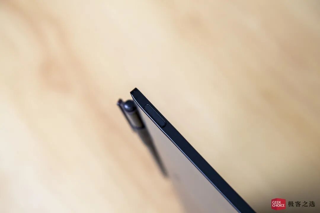 外观设计上最大的变化其实是侧边,一体性更强。之前一代的电源键在正面上部,开孔集中在底部,这次 X2 的电源键和开孔都集中在了顶部,分别是指示灯、Type-C 接口、SIM 卡和 TF 卡二合一卡槽。电源键不仅是开关,还集成了指纹识别,用于保护信息安全。X2 的厚度也比一代更薄,只有 5.8mm。