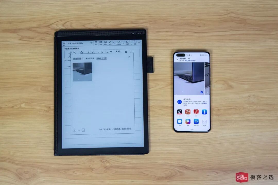 单独提一句,X2 和手机联动除了可以通过读写客 App,还支持华为分享,华为手机上的图片能直接分享到 X2 中。未来期待能够支持互传联盟,打通更多手机品牌。