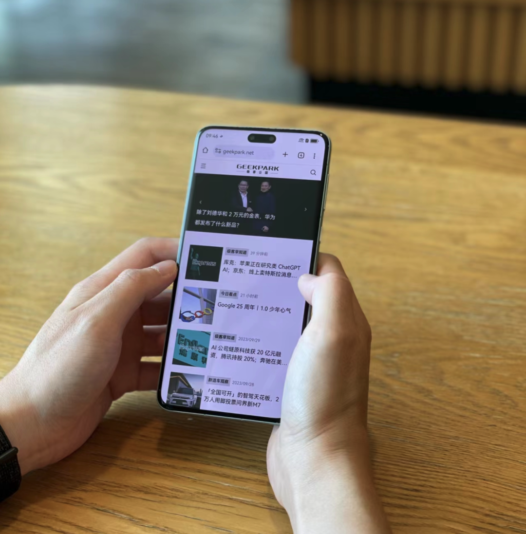 在正面,华为 Mate 60 Pro 使用的 6.82 英寸、FHD+ 2720 × 1260 像素的 OLED 屏幕,让使用 mini 系列的笔者像是「村通网」的刘姥姥,对于这块屏幕展现出的细腻和多彩挪不开眼睛,高达 120 Hz 的 LTPO 刷新率也让快速浏览网页时候的效果更佳。