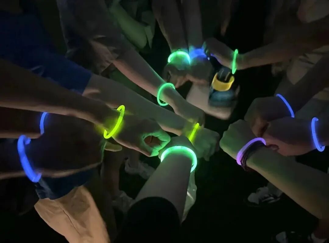 3. 之后,玩家通过抽签确定「猫鼠」身份,并快速分组,领取发光手环和荧光棒,这些道具让「猫鼠」都能清楚地识别对方,让游戏更加可视化和刺激。