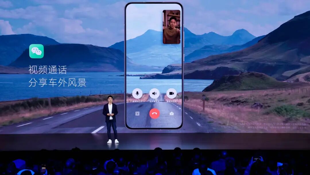 负责介绍澎湃 OS 的 MIUI 负责人金凡,在发布会上展示了一个亮眼的场景:在手机视频通话的时候,可以将通讯软件调用的摄像头,从手机切换到汽车外部的摄像头。虽然发布会没有车,但处处好像都是小米汽车的施法前摇。